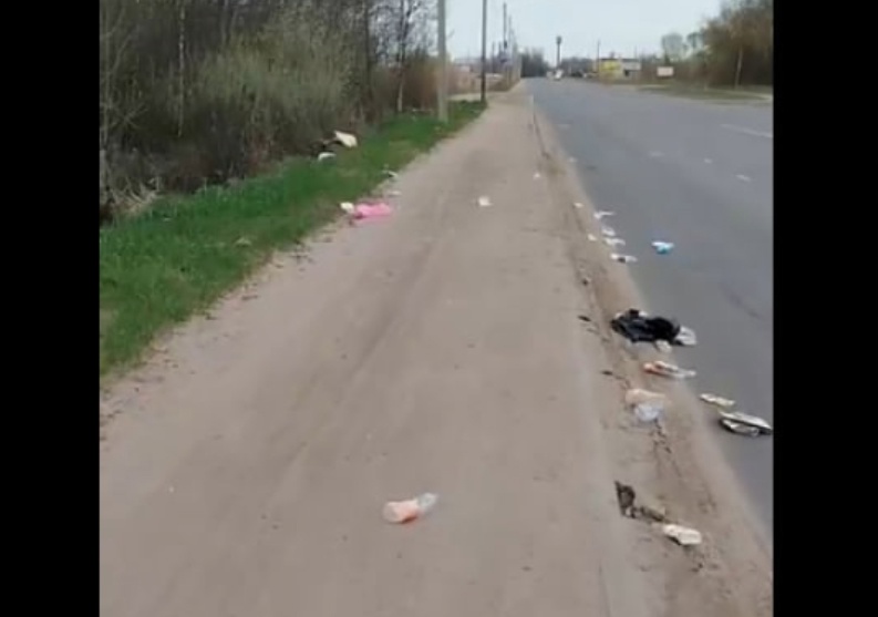 Пакеты, окурки, бумага и прочий хлам валяются на кромке проезжей части повсюду.