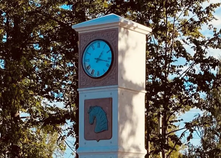 И часы с лошадиной головой, установленные в августе, на месте. А еще в парке появился макет Воскресенского храма, снесенного во времена гонений на церковь в 1938 году.