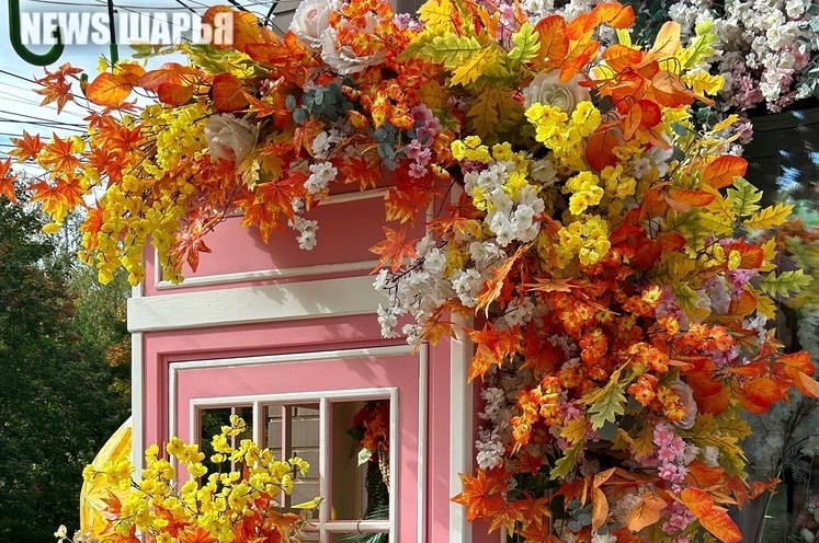 Рыжими, красными и желтыми кленовыми листьями, огромными подсолнухами украсили старинную телефонную будку у торгового центра в самом центре Шарьи, словно именно там остановилась золотая осень, которую никак не могут дождаться горожане.