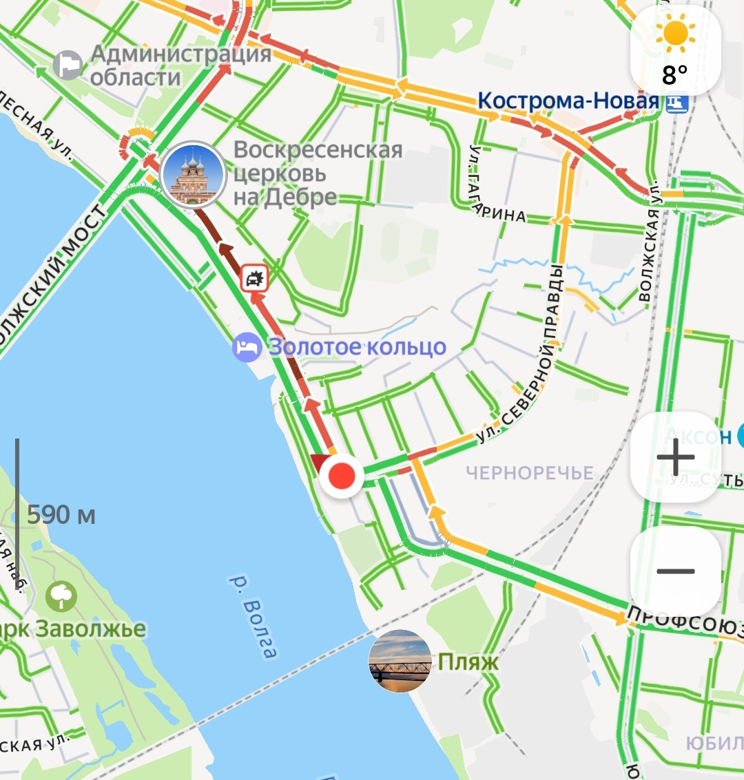 Костромичам рекомендуют объезжать этот участок, чтобы не застрять в пробке надолго.