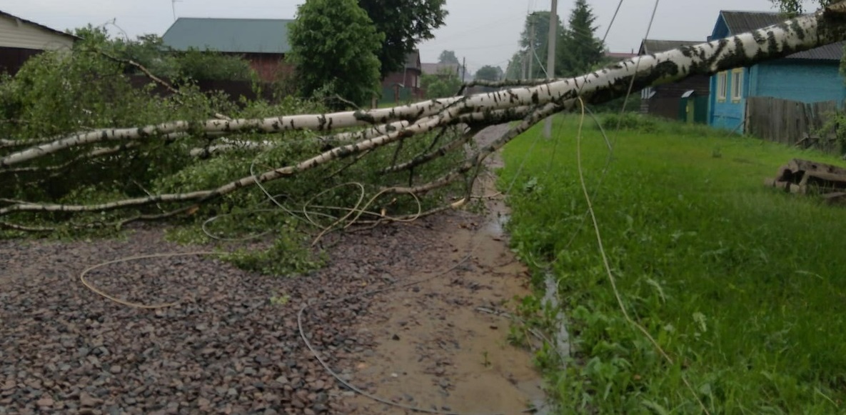 Тяжелые стволы рухнули прямо на линию электропередач.