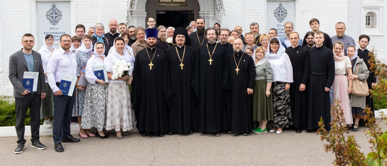 22 июня в историческом здании Костромской духовой семинарии вручили дипломы и свидетельства первым выпускникам Центра подготовки церковных специалистов Костромской епархии.