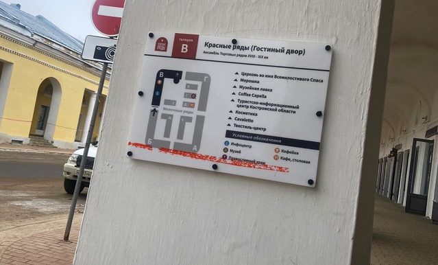 Разъясняющие указатели появились в Торговых рядах. На табличках подробное схематичное разъяснение о каждой из четырех галерей рядов — А, Б, В и Г.
