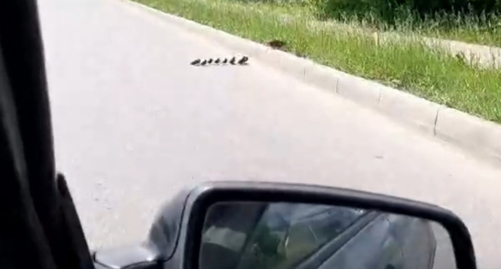 Мама-утка с малышами важно пошагала дальше по своим делам, а местные жители проследили, чтобы пернатые ушли подальше от дороги и не попали в под колеса автомобилей.