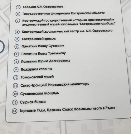 На пилоне, установленном на остановке «Площадь Воскресенская», на карте, где указаны ближайшие маршруты общественного транспорта и главные достопримечательности города, создатели объекта допустили оплошность. Они переименовали классика русской литературы, костромского драматурга Александра Николаевича Островского в Николая. Именно так — «Беседка Николая Островского» — и значилось на указателе.