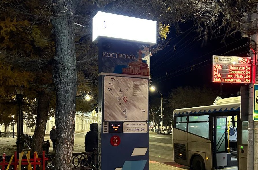 Прямо на остановке «Площадь Воскресенская» (рядом с фонтаном) установили стенд с кнопкой для вызова экстренных служб.