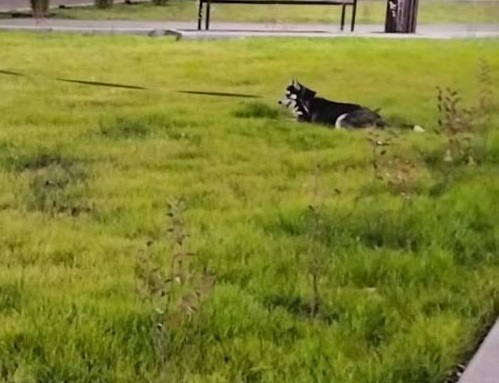 Сообщение снабжено фотографией симпатичного пса, которого хозяин, как и положено, держит на поводке. Вот только стоят оба прямо на свежей травке.