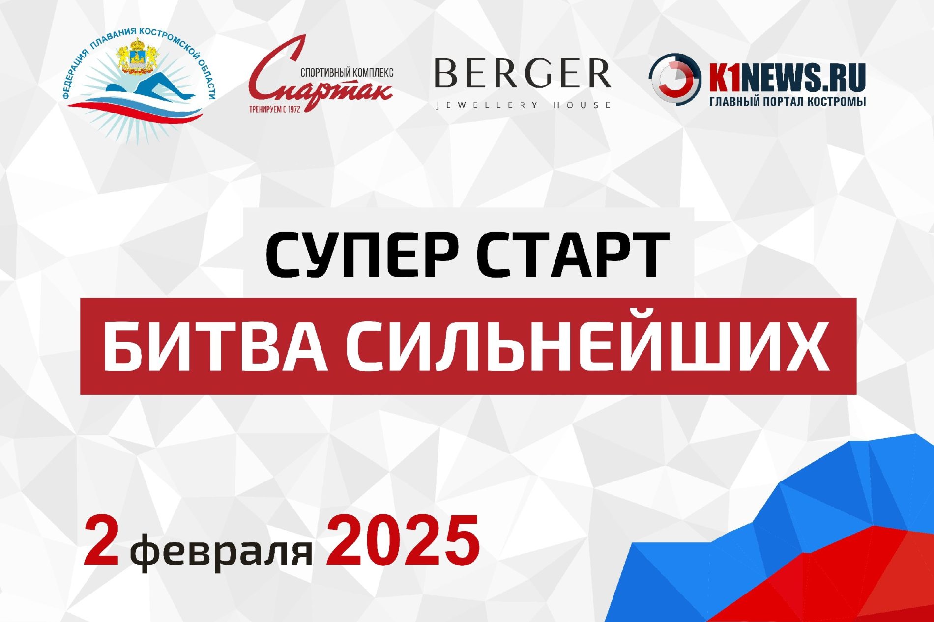 2 февраля в 17:00 Федерация плавания Костромской области совместно со Спорткомплексом «Спартак» проводит командное шоу-соревнование «СУПЕРСТАРТ.Битва сильнейших».