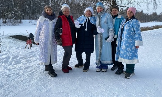 Они собрались в парке в костюмах Дедов Морозов, Снегурочек, Снеговиков, Елочек и прочих сказочных персонажей. Но и тем, кто просто не забыл купальные принадлежности, тут были рады.