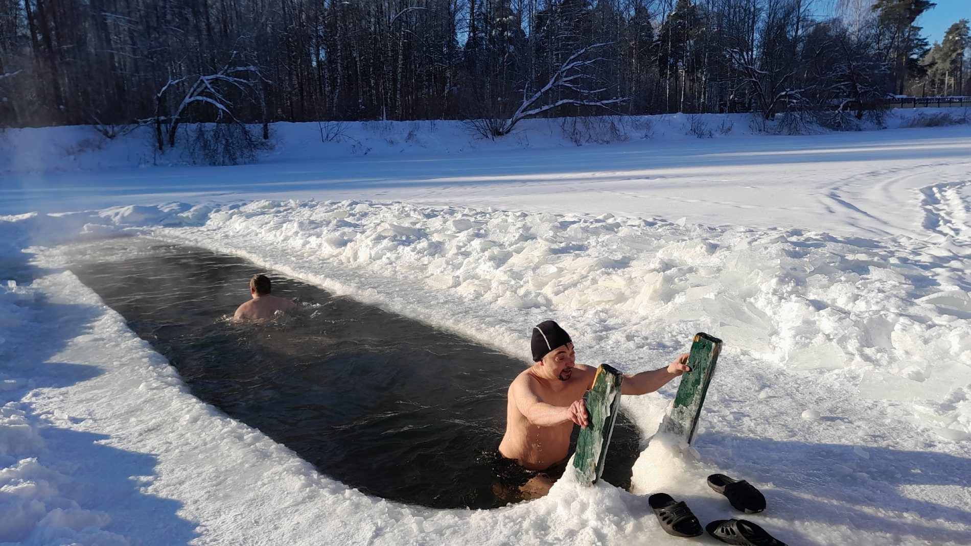 Опытные спортсмены демонстрировали чудеса выносливости, свободно плавая в холодной воде. Другие смогли лишь к окунуться, но и это стало личным достижением.