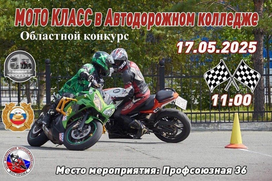 Второй этап областного конкурса «МотоКласс» состоится 17 мая в 11 утра в Костромском автодорожном колледже на Профсоюзной, 36.