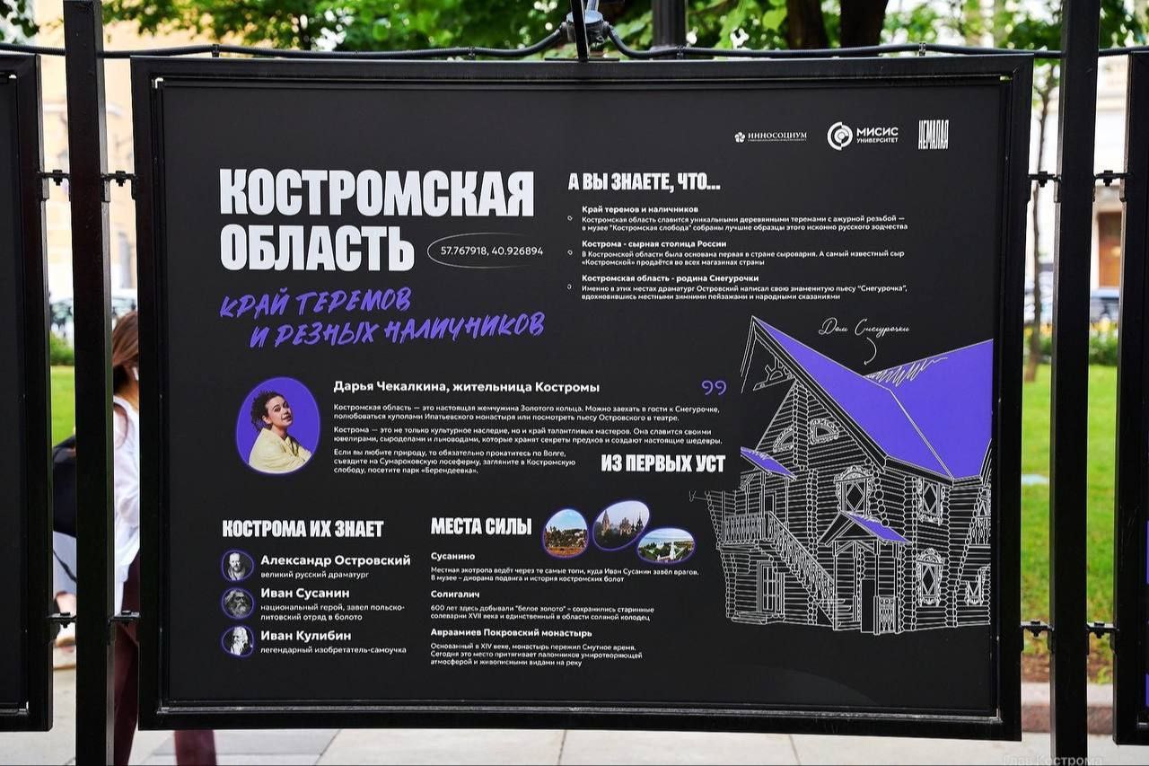 На огромном красочном костромском стенде размещена история студентки КГУ Дарьи Чекалкиной о достопримечательностях региона.