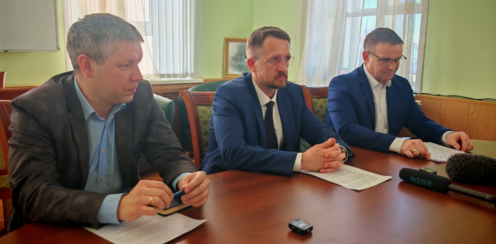 Перед журналистами выступили первый заместитель главы администрации города Олег Болоховец, начальник управления дорожной деятельности Евгений Колобов и руководитель МКУ «Дорожное хозяйство» Александр Сутягин.