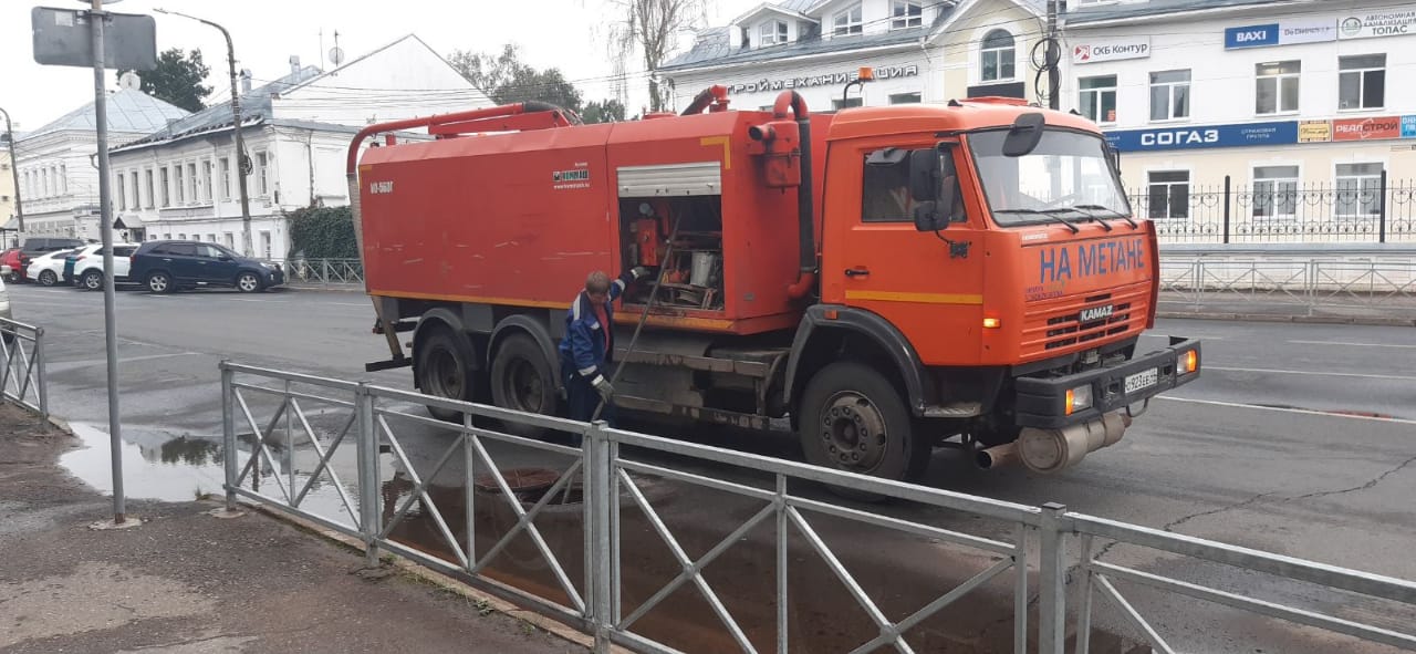 МУП «Костромагорводоканал» организовало работы по отведению воды с улиц города, которая скопилась после проливных дождей.