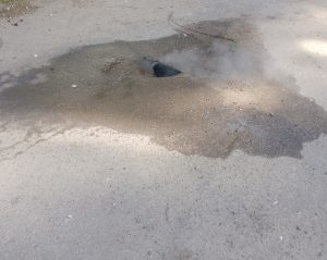 Новая «достопримечательность» появилась в микрорайоне Паново областного центра. Отверстие, открывшееся в асфальте, исходит паром. Асфальт вокруг него намок. «Между домами…
