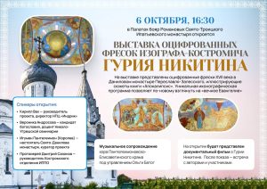 Завтра, 6 октября в 16:30 в Костроме откроется выставка оцифрованных фресок выдающегося изографа-костромича Гурия Никитина. Экспозиция будет работать в Палатах бояр Романовых Свято-Троицкого…