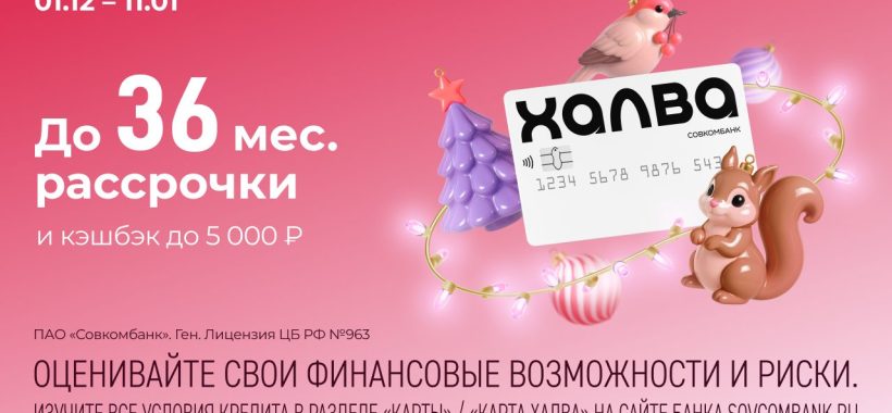 Совкомбанк и «Халва» запускают акцию «Новогодний бум»: кэшбэк, рассрочка и ценные призы в суперфинале