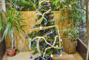 В Костромском экзотариуме нарядили елочку весьма необычным способом. 2025-й – год Деревянной Зеленой Змеи. Символ года любит деревянный и блестящий…