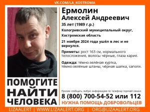 Поисковики опубликовали ориентировки с приметами мужчины. Поисковый спасательный отряд «ЛизаАлерт» сообщил приметы жителя Костромской области, который пропал 21 ноября….