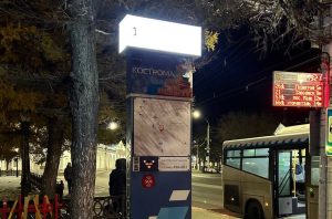 Прямо на остановке «Площадь Воскресенская» (рядом с фонтаном) установили стенд с кнопкой для вызова экстренных служб. На стеле имеется указание…