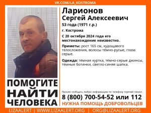 53-летний Сергей Ларионов пропал еще 20 октября, с тех пор о нем никто не слышал. Известны приметы костромича: рост: 165…
