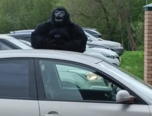 Пользователи соцсетей заметили неподалеку от зоопарка улыбающуюся гориллу. И поделились видео в соцсетях. Огромный мохнатый зверь танцует на парковке среди…