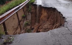На трассе Антропово-Кадый размыло дождями проезжую часть. Кусок трассы выглядит как провал в бездну. В лесистой части дороги образовалась яма…