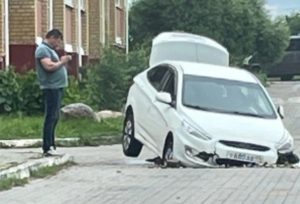 Автомобиль увяз в яме на одной из дорог в Костроме. Все дело в том, что в микрорайоне Катино, в одном…