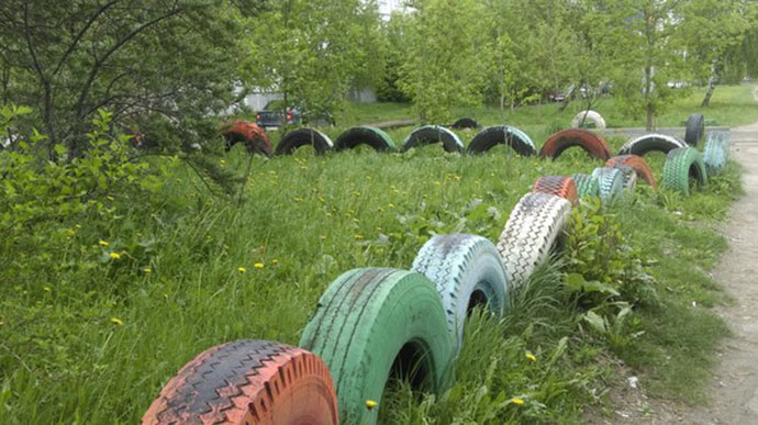Одно дело создавать такие «шедевры» из шин на своем дачном участке, совсем другое – во дворах, и, тем более, на территориях социальных учреждений.