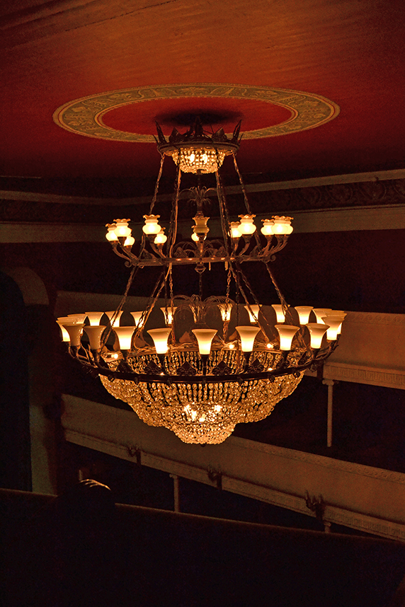 Огромная роскошная люстра в зрительном зале сразу бросается в глаза и никого не оставляет равнодушным. Одни поглядывают на нее с восхищением: красота, достойная королевского дворца. Другие – особенно те, кто сидит в партере, — посматривают на гигантский светильник с опасением: а что, если эта громадина вдруг упадет? Но никто не сомневается, что эта люстра очень старая, может быть, даже старше самого театра! Так и хочется сказать: «Старинная…»